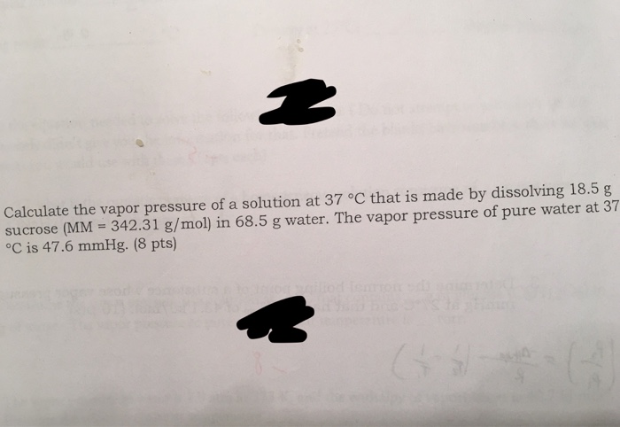 Solutions from image.slidesharecdn.com I don't know how this is any different from part (b). 0.10 m sodium chloride 0.10 sodium sulfate 0.10 m sodium. So what formula should i use to calculate the vapor pressure of a much higher concentration. See spelling differences) or equilibrium vapor pressure is defined as the pressure exerted by a vapor in thermodynamic equilibrium with its condensed phases (solid or liquid) at a given temperature in a closed system. So what happens if the liquid contains a nonvolatile solute, in other words, a solute that does not evaporate and merely stays in the solution? Calculate the osmotic pressure of a solution that consists of 4.68 g of hemoglobin (molar mass = 6.83 104 g/mol) in 125 ml of water (molar mass = 18.0 g/mol). According to raoult's law, we know that partial vapour pressure of individual component (solute/solvent) is directly proportional to its mole fraction. Determine vapor pressure of change temp.