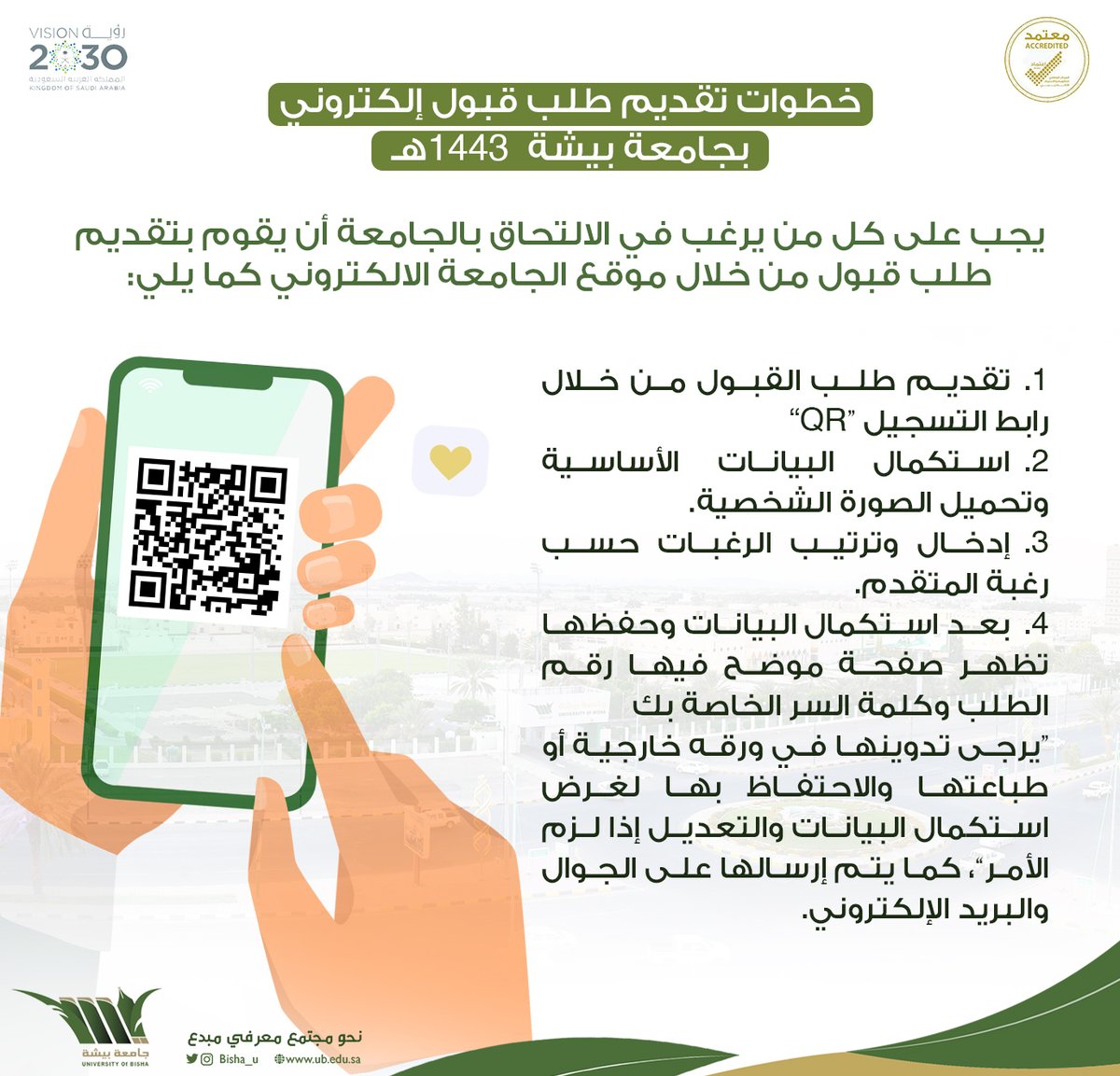 بلاك بورد جامعه بيشه دخول الطلاب والدعم الفني موقع محتويات. يتم التأكيد على قبول المرحلة الثانية في جامعة بيشة يوم6/12/1442 هـ. تعد عمادة شؤون القبول والتسجيل من أهم قنوات الاتصال بين الجامعة والمجتمع وتجاوزت بأعمالها الحدود التقليدية ولم تعد تقتصر على الأنشطة والأعمال الإدارية والفنية داخل أسوار العمادة وكواجهة من واجهات الجامعة أصبحت. أعلنت عمادة القبول والتسجيل بجامعة بيشة نتائج ترشيح المرحلة الأولى للقبول لدرجة البكالوريوس للعام الجامعي ١٤٤٣هـ يوم امس الأثنين ١٤٤٣/١٢/٢هـ عبر إرسال رسائل نصية الى جميع المرشحين والمرشحات، حيث بلغ عدد من تم. أتاحت جامعة بيشة عدد مهم من التخصّصات التي يمكن للطالب أو الطالبة السعودية التسجيل عبرها بعد المرور من شروط القبول، عبر باقة من الكليات التابعة للجامعة، وهي: